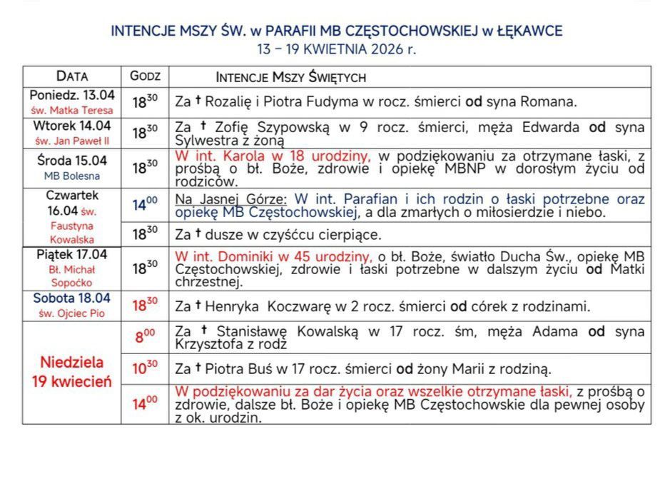 Intencje mszalne