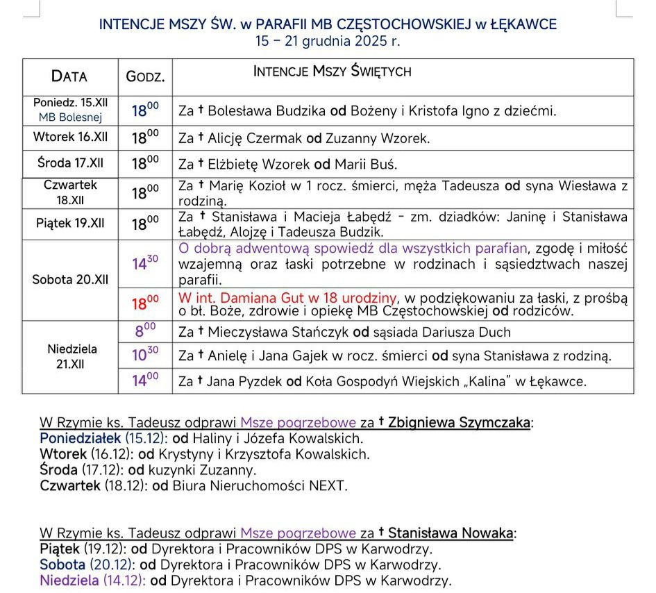 Parafia Rzymskokatolicka M.B. Częstochowskiej w Łękawce