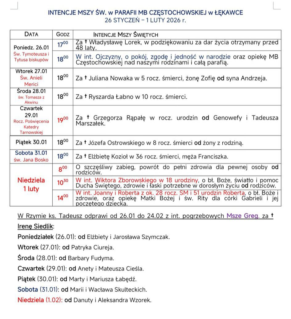 Parafia Rzymskokatolicka M.B. Częstochowskiej w Łękawce
